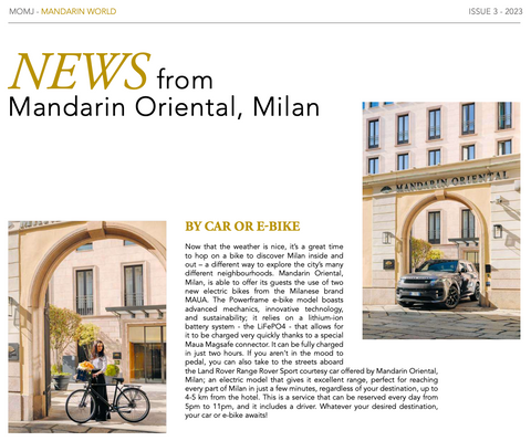 Le nostre Powerframe create appositamente per il Mandarin Oriental di Milano sono disponibili in struttura per tutti i clienti che potranno noleggiarle per vivere delle experience meravigliose e scoprire comodamente la città di Milano.